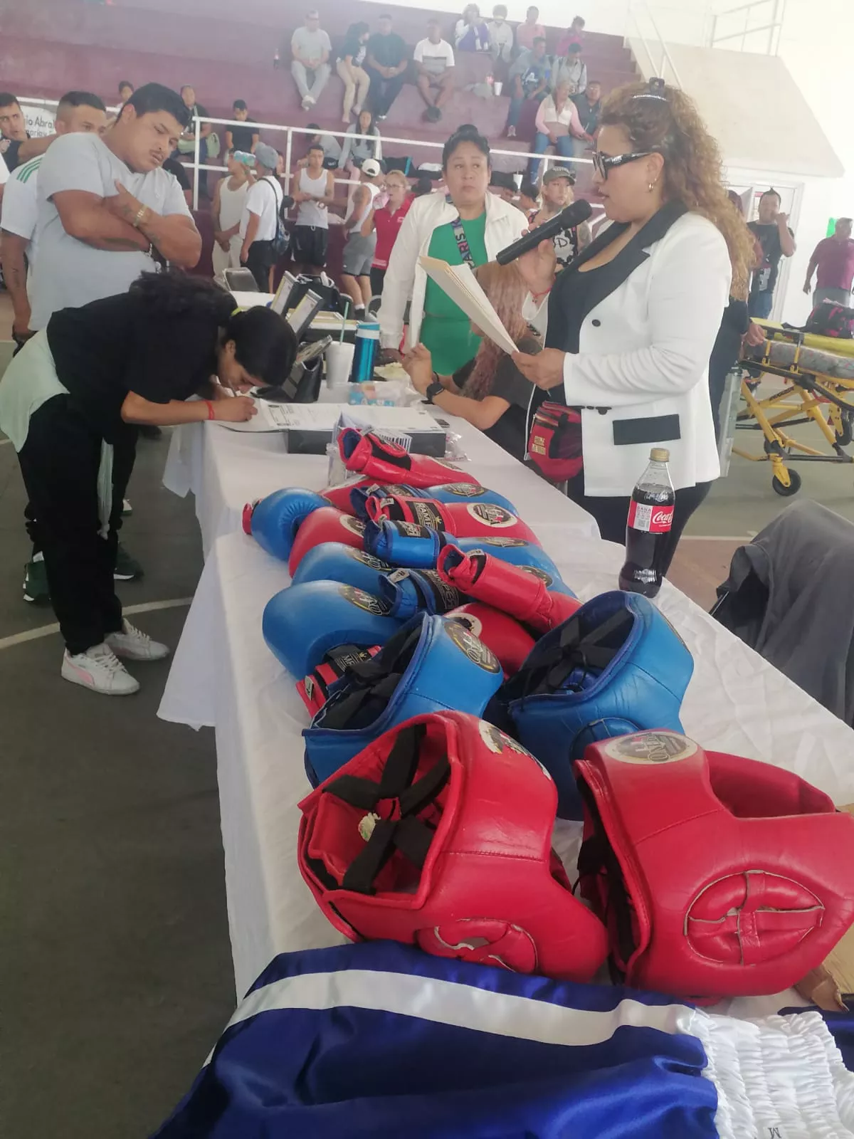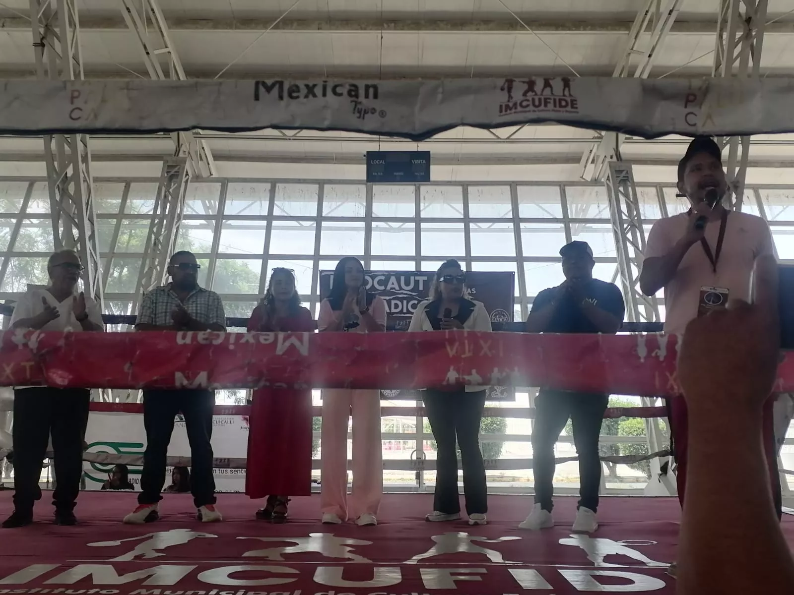 El presídium en la inauguración del evento: De izquierda a derecha: Médico del Deporte de la ONEBA, Fundador y presidente de la Fundación Fortaleza Tepito, Gestora Social de “Casa Yere” Ixtapaluca, 4ta. Regidora de Ixtapaluca, Carmen Márquez Hernández de la ONEBA.